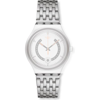 Dieses Swatch Uhrarmband ist aus edelstahl gefertigt und wird mit stahlstifte an der Uhr befestigt. Das Band hat eine Breite von 18.9 mm und wird mit einer sicherheitsfaltschließe geschlossen. Das Uhrenarmband hat keine gerade Halterung, was bedeutet, dass dieses Band nur für die unten aufgeführten Uhren geeignet ist.