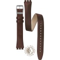 Dieses Swatch Uhrarmband ist aus leder gefertigt und wird mit stahlstifte an der Uhr befestigt. Das Band hat eine Breite von 18.9 mm und wird mit einer dornschließe geschlossen. Das Uhrenarmband hat keine gerade Halterung, was bedeutet, dass dieses Band nur für die unten aufgeführten Uhren geeignet ist.