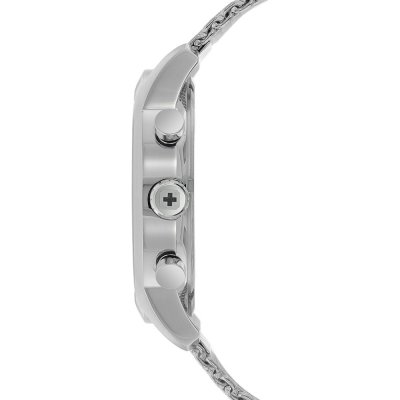 Diese Swiss Military Hanowa Uhr hat ein Edelstahl Gehäuse mit einem Durchmesser von 45 mm und ist mit einem Armband aus Edelstahl versehen. In der Uhr arbeitet ein Ronda Uhrwerk. Das Glas der Uhr besteht aus Sapphir - Glas.