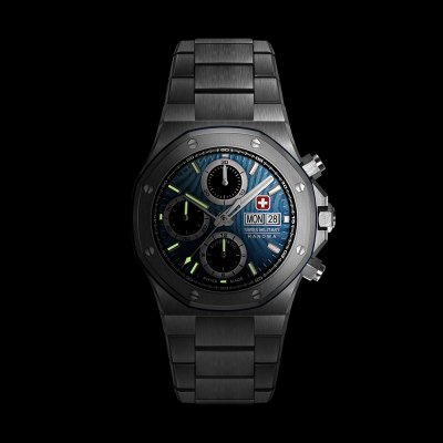 Diese Swiss Military Hanowa Uhr hat ein Edelstahl Gehäuse mit einem Durchmesser von 43 mm und ist mit einem Armband aus Edelstahl versehen. In der Uhr arbeitet ein ETA Uhrwerk. Das Glas der Uhr besteht aus Sapphir - Glas.