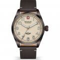 Diese Swiss Military Hanowa Uhr hat ein Edelstahl Gehäuse mit einem Durchmesser von 42 mm und ist mit einem Armband aus Leder versehen. In der Uhr arbeitet ein Ronda Uhrwerk. Das Glas der Uhr besteht aus Sapphir - Glas.