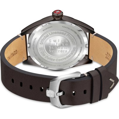 Die Uhr ist wasserdicht bis 10 ATM. Das bedeutet, dass die Uhr zum Schwimmen geeignet ist.. Die Uhr wird mit Swiss Military 3+2 geliefert.