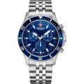 Diese Swiss Military Hanowa Uhr hat ein Edelstahl Gehäuse mit einem Durchmesser von 42 mm und ist mit einem Armband aus Edelstahl versehen. In der Uhr arbeitet ein Ronda Uhrwerk. Das Glas der Uhr besteht aus Sapphir - Glas.
