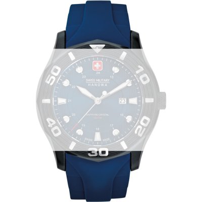 Dieses Swiss Military Hanowa Uhrarmband ist aus silikon gefertigt und wird mit druckstifte an der Uhr befestigt. Das Band hat eine Breite von 24 mm und wird mit einer dornschließe geschlossen. Das Uhrenarmband hat keine gerade Halterung, was bedeutet, dass dieses Band nur für die unten aufgeführten Uhren geeignet ist.