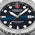 Diese Swiss Military Hanowa Uhr hat ein Edelstahl Gehäuse mit einem Durchmesser von 43 mm und ist mit einem Armband aus Edelstahl versehen. In der Uhr arbeitet ein Ronda Uhrwerk. Das Glas der Uhr besteht aus Sapphir - Glas.