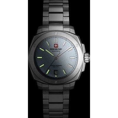 Diese Swiss Military Hanowa Uhr hat ein Edelstahl Gehäuse mit einem Durchmesser von 40 mm und ist mit einem Armband aus Edelstahl versehen. In der Uhr arbeitet ein Ronda Uhrwerk. Das Glas der Uhr besteht aus Sapphir - Glas.