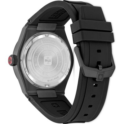 Diese Swiss Military Hanowa Uhr hat ein Edelstahl Gehäuse mit einem Durchmesser von 43 mm und ist mit einem Armband aus Kautschuk versehen. In der Uhr arbeitet ein Ronda Uhrwerk. Das Glas der Uhr besteht aus Sapphir - Glas.