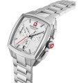 Diese Swiss Military Hanowa Uhr hat ein Edelstahl Gehäuse mit einem Durchmesser von 40 mm und ist mit einem Armband aus Edelstahl versehen. In der Uhr arbeitet ein Ronda Uhrwerk. Das Glas der Uhr besteht aus Sapphir - Glas.