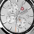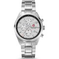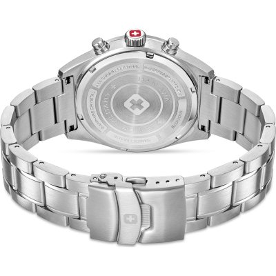Diese Swiss Military Hanowa Uhr hat ein Edelstahl Gehäuse mit einem Durchmesser von 43 mm und ist mit einem Armband aus Edelstahl versehen. In der Uhr arbeitet ein Ronda Uhrwerk. Das Glas der Uhr besteht aus Sapphir - Glas.