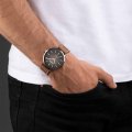 Diese Timberland Uhr hat ein Edelstahl Gehäuse mit einem Durchmesser von 42 mm und ist mit einem Armband aus Leder versehen. In der Uhr arbeitet ein Seiko Instruments Inc. Uhrwerk. Das Glas der Uhr besteht aus Mineral - Glas.