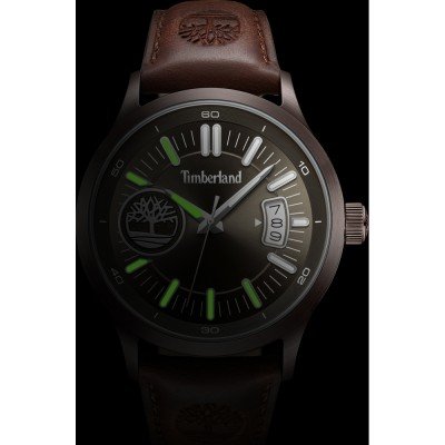 Diese Timberland Uhr hat ein Edelstahl Gehäuse mit einem Durchmesser von 45 mm und ist mit einem Armband aus Leder versehen. In der Uhr arbeitet ein Seiko Instruments Inc. Uhrwerk. Das Glas der Uhr besteht aus Mineral - Glas.