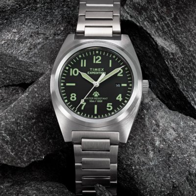 Diese Timex Uhr hat ein Metalllegierung Gehäuse mit einem Durchmesser von 39 mm und ist mit einem Armband aus Edelstahl versehen. In der Uhr arbeitet ein Timex Uhrwerk. Das Glas der Uhr besteht aus Mineral - Glas.