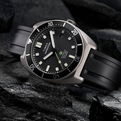 Diese Timex Uhr hat ein Titan Gehäuse mit einem Durchmesser von 41 mm und ist mit einem Armband aus Bio-Kunststoff versehen. In der Uhr arbeitet ein Timex Uhrwerk. Das Glas der Uhr besteht aus Sapphir - Glas.