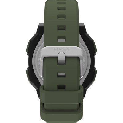 Diese Timex Uhr hat ein Kunstharz Gehäuse mit einem Durchmesser von 43 mm und ist mit einem Armband aus Kautschuk versehen. In der Uhr arbeitet ein Timex Uhrwerk. Das Glas der Uhr besteht aus Acryl - Glas.