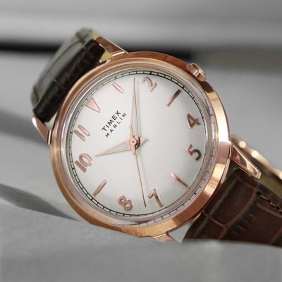 Diese Timex Uhr hat ein Edelstahl Gehäuse mit einem Durchmesser von 34 mm und ist mit einem Armband aus Leder versehen. In der Uhr arbeitet ein Timex Uhrwerk. Das Glas der Uhr besteht aus Acryl - Glas.