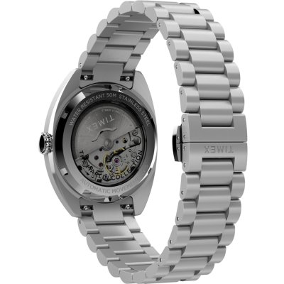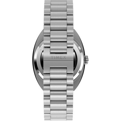 Diese Timex Uhr hat ein Edelstahl Gehäuse mit einem Durchmesser von 37 mm und ist mit einem Armband aus Edelstahl versehen. In der Uhr arbeitet ein Timex Uhrwerk. Das Glas der Uhr besteht aus Mineral - Glas.