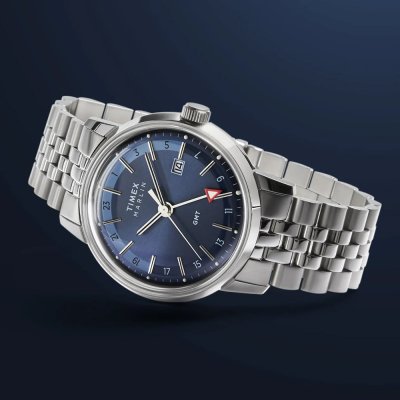 Diese Timex Uhr hat ein Edelstahl Gehäuse mit einem Durchmesser von 40 mm und ist mit einem Armband aus Edelstahl versehen. In der Uhr arbeitet ein Timex Uhrwerk. Das Glas der Uhr besteht aus Acryl - Glas.