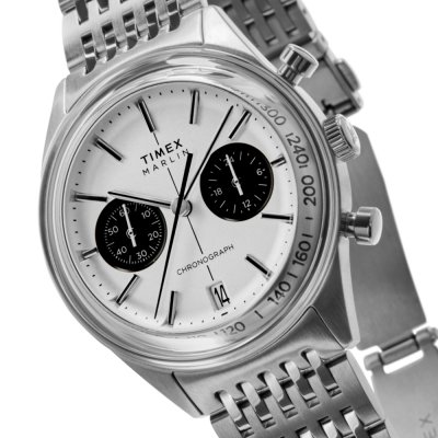 Diese Timex Uhr hat ein Edelstahl Gehäuse mit einem Durchmesser von 40 mm und ist mit einem Armband aus Edelstahl versehen. In der Uhr arbeitet ein Timex Uhrwerk. Das Glas der Uhr besteht aus Hesalite - Glas.