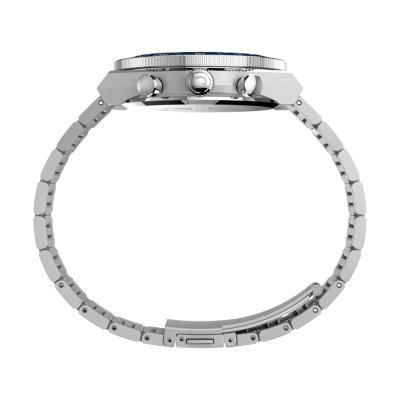 Diese Timex Uhr hat ein Edelstahl Gehäuse mit einem Durchmesser von 40 mm und ist mit einem Armband aus Edelstahl versehen. In der Uhr arbeitet ein Timex Uhrwerk. Das Glas der Uhr besteht aus Mineral - Glas.