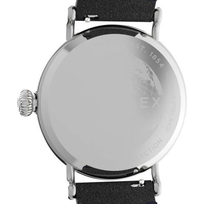 Diese Timex Uhr hat ein Metalllegierung Gehäuse mit einem Durchmesser von 40 mm und ist mit einem Armband aus Leder versehen. In der Uhr arbeitet ein Timex Uhrwerk. Das Glas der Uhr besteht aus Mineral - Glas.