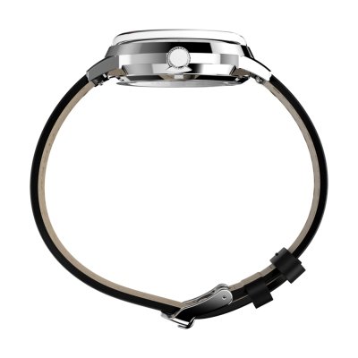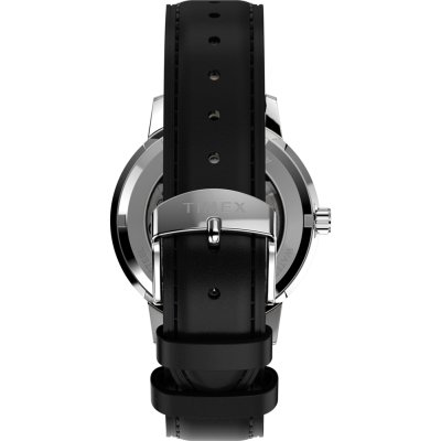 Diese Timex Uhr hat ein Edelstahl Gehäuse mit einem Durchmesser von 38 mm und ist mit einem Armband aus Leder versehen. In der Uhr arbeitet ein Timex Uhrwerk. Das Glas der Uhr besteht aus Acryl - Glas.