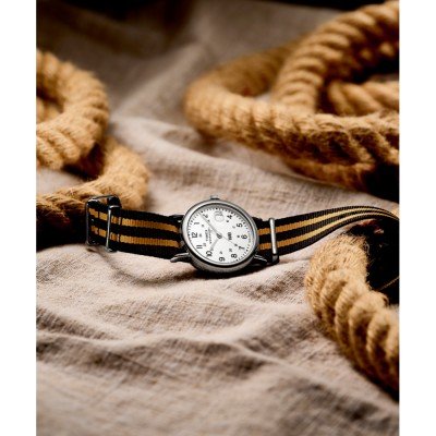 Diese Timex Uhr hat ein Metalllegierung Gehäuse mit einem Durchmesser von 40 mm und ist mit einem Armband aus Textil versehen. In der Uhr arbeitet ein Timex Uhrwerk. Das Glas der Uhr besteht aus Mineral - Glas.