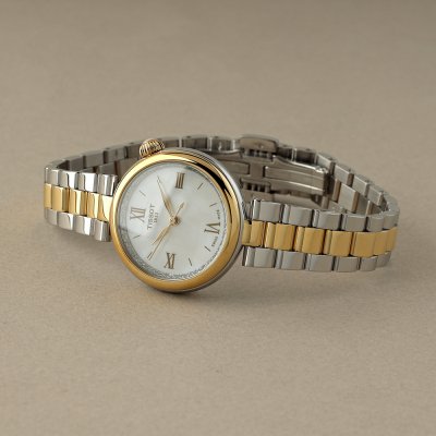 Diese Tissot Uhr hat ein Edelstahl Gehäuse mit einem Durchmesser von 28 mm und ist mit einem Armband aus Edelstahl versehen. In der Uhr arbeitet ein ETA Uhrwerk. Das Glas der Uhr besteht aus Sapphir - Glas.