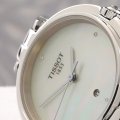 Diese Tissot Uhr hat ein Edelstahl Gehäuse mit einem Durchmesser von 30 mm und ist mit einem Armband aus Edelstahl versehen. In der Uhr arbeitet ein ETA Uhrwerk. Das Glas der Uhr besteht aus Sapphir - Glas.