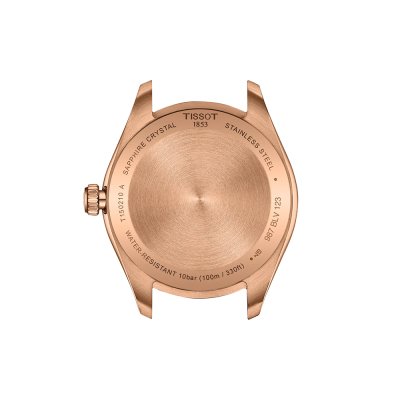 Diese Tissot Uhr hat ein Edelstahl Gehäuse mit einem Durchmesser von 34 mm und ist mit einem Armband aus Edelstahl versehen. In der Uhr arbeitet ein ETA Uhrwerk. Das Glas der Uhr besteht aus Sapphir - Glas.
