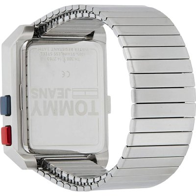 Diese Tommy Hilfiger Uhr hat ein Edelstahl Gehäuse mit einem Durchmesser von 35 mm und ist mit einem Armband aus Metall versehen. In der Uhr arbeitet ein Bao Jie Uhrwerk. Das Glas der Uhr besteht aus Mineral - Glas.
