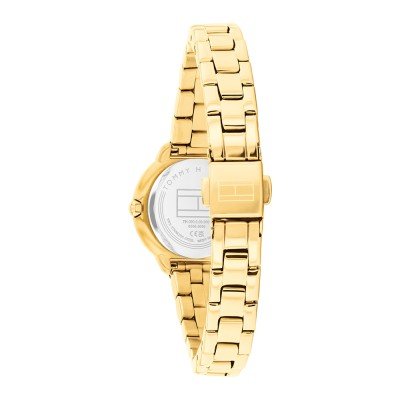 Diese Tommy Hilfiger Uhr hat ein Edelstahl Gehäuse mit einem Durchmesser von 26 mm und ist mit einem Armband aus Edelstahl versehen. In der Uhr arbeitet ein Seiko Instruments Inc. Uhrwerk. Das Glas der Uhr besteht aus Mineral - Glas.