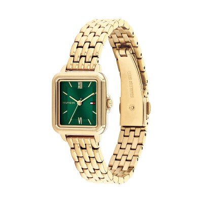 Diese Tommy Hilfiger Uhr hat ein Edelstahl Gehäuse mit einem Durchmesser von 24 mm und ist mit einem Armband aus Edelstahl versehen. In der Uhr arbeitet ein Seiko Instruments Inc. Uhrwerk. Das Glas der Uhr besteht aus Mineral - Glas.