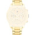 Dieses Tommy Hilfiger Uhrarmband ist aus edelstahl gefertigt und wird mit druckstifte an der Uhr befestigt. Das Band hat eine Breite von 22 mm und wird mit einer faltschließe mit Druckknöpfen geschlossen. Das Uhrenarmband hat keine gerade Halterung, was bedeutet, dass dieses Band nur für die unten aufgeführten Uhren geeignet ist.