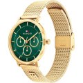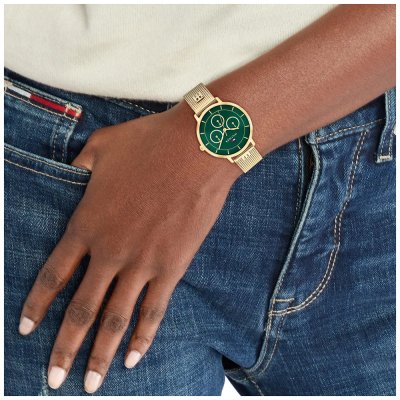 Diese Tommy Hilfiger Uhr hat ein Edelstahl Gehäuse mit einem Durchmesser von 36 mm und ist mit einem Armband aus Edelstahl versehen. In der Uhr arbeitet ein Seiko Instruments Inc. Uhrwerk. Das Glas der Uhr besteht aus Mineral - Glas.