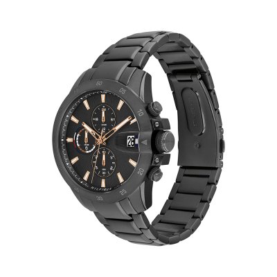 Diese Tommy Hilfiger Uhr hat ein Edelstahl Gehäuse mit einem Durchmesser von 43 mm und ist mit einem Armband aus Edelstahl versehen. In der Uhr arbeitet ein Seiko Instruments Inc. Uhrwerk. Das Glas der Uhr besteht aus Mineral - Glas.