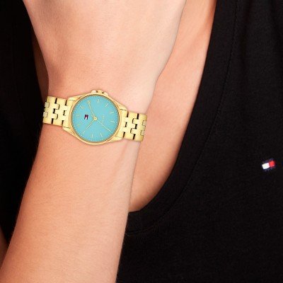 Diese Tommy Hilfiger Uhr hat ein Edelstahl Gehäuse mit einem Durchmesser von 30 mm und ist mit einem Armband aus Edelstahl versehen. In der Uhr arbeitet ein Seiko Uhrwerk. Das Glas der Uhr besteht aus Mineral - Glas.