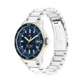 Diese Tommy Hilfiger Uhr hat ein Edelstahl Gehäuse mit einem Durchmesser von 43 mm und ist mit einem Armband aus Edelstahl versehen. In der Uhr arbeitet ein Seiko Instruments Inc. Uhrwerk. Das Glas der Uhr besteht aus Mineral - Glas.