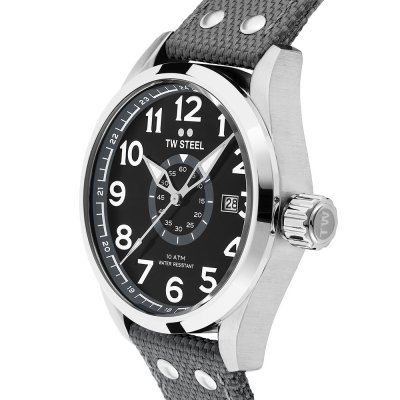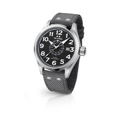 Diese TW Steel Uhr hat ein Edelstahl Gehäuse mit einem Durchmesser von 45 mm und ist mit einem Armband aus Textil auf Leder versehen. In der Uhr arbeitet ein Miyota Uhrwerk. Das Glas der Uhr besteht aus Gehärtetem Mineral - Glas.