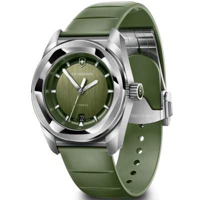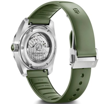 Diese Victorinox Uhr hat ein Edelstahl Gehäuse mit einem Durchmesser von 39 mm und ist mit einem Armband aus Kautschuk versehen. In der Uhr arbeitet ein La Joux-Perret Uhrwerk. Das Glas der Uhr besteht aus Einfaches reflektionsfreies Saphirglas - Glas.