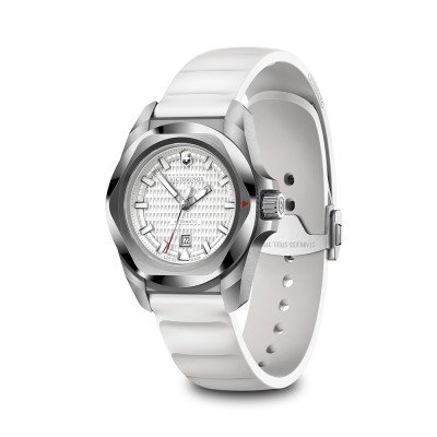 Diese Victorinox Uhr hat ein Edelstahl Gehäuse mit einem Durchmesser von 32 mm und ist mit einem Armband aus Kautschuk versehen. In der Uhr arbeitet ein Sellita Uhrwerk. Das Glas der Uhr besteht aus Einfaches reflektionsfreies Saphirglas - Glas.