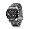 Diese Victorinox Uhr hat ein Edelstahl Gehäuse mit einem Durchmesser von 42 mm und ist mit einem Armband aus Edelstahl versehen. In der Uhr arbeitet ein Ronda Uhrwerk. Das Glas der Uhr besteht aus Einfaches reflektionsfreies Saphirglas - Glas.