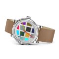 Diese Walter Gropius Uhr hat ein Edelstahl Gehäuse mit einem Durchmesser von 40 mm und ist mit einem Armband aus Leder versehen. In der Uhr arbeitet ein Seiko Instruments Inc. Uhrwerk. Das Glas der Uhr besteht aus Doppel antireflex Saphirglas - Glas.
