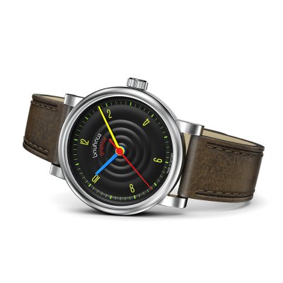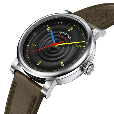 Diese Walter Gropius Uhr hat ein Edelstahl Gehäuse mit einem Durchmesser von 40 mm und ist mit einem Armband aus Leder versehen. In der Uhr arbeitet ein Seiko Instruments Inc. Uhrwerk. Das Glas der Uhr besteht aus Doppel antireflex Saphirglas - Glas.