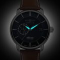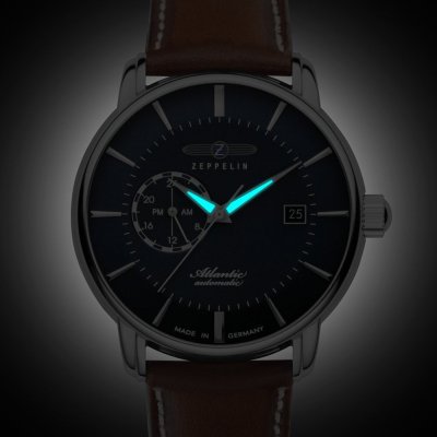 Diese Zeppelin Uhr hat ein Edelstahl Gehäuse mit einem Durchmesser von 40 mm und ist mit einem Armband aus Leder versehen. In der Uhr arbeitet ein Miyota Uhrwerk. Das Glas der Uhr besteht aus K1 Mineral - Glas.
