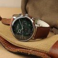 Diese Zeppelin Uhr hat ein Edelstahl Gehäuse mit einem Durchmesser von 40 mm und ist mit einem Armband aus Veganes Leder versehen. In der Uhr arbeitet ein Seiko Uhrwerk. Das Glas der Uhr besteht aus K1 Mineral - Glas.